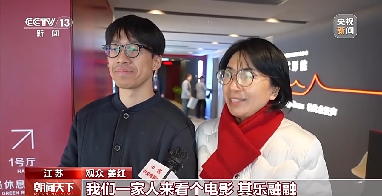 观众 姜红:春节就是全家人团圆的一个纽带,那么趁这个纽带在一起,我们一家人来看个电影其乐融融。