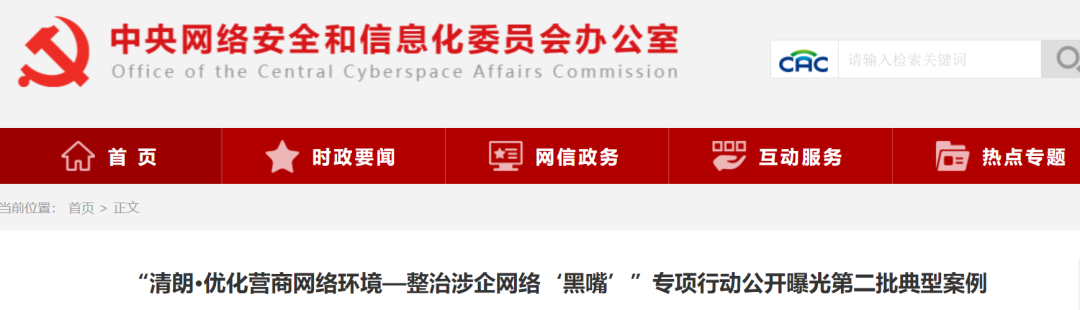 “清朗·优化营商网络环境—整治涉企网络‘黑嘴’”专项行动公开曝光第二批典型案例